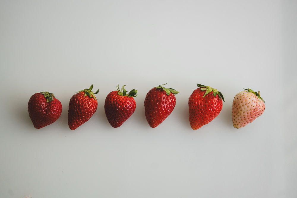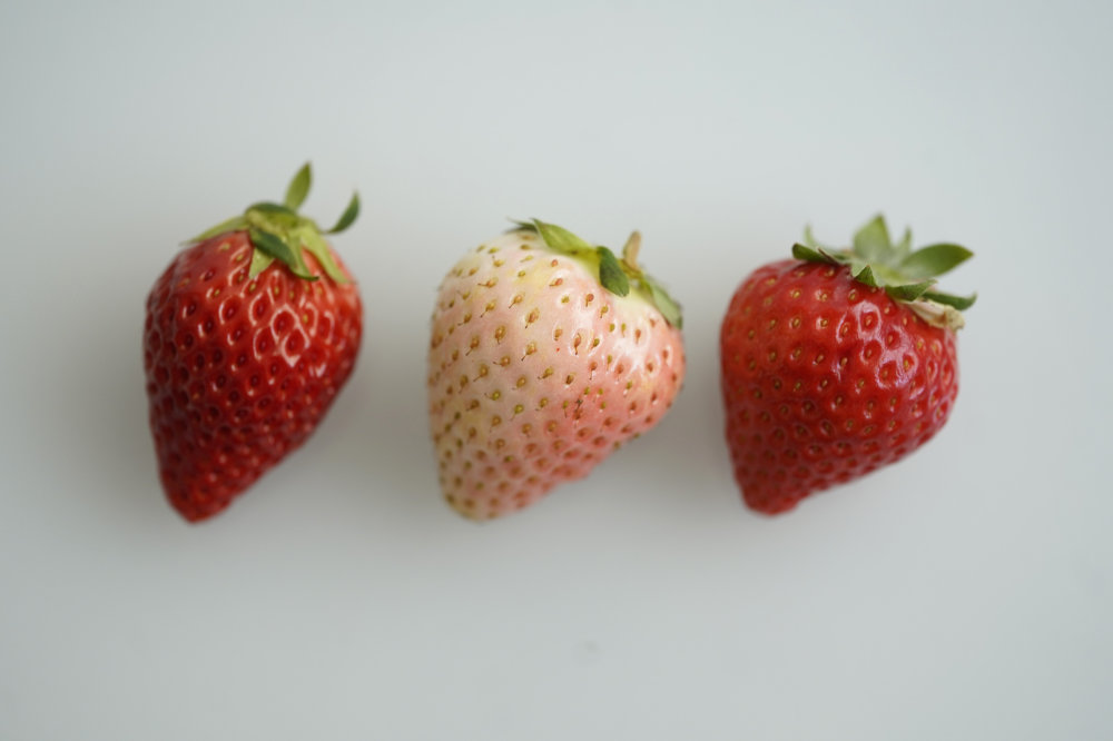苺の最もわかりやすい違いは、人気の白苺や淡い色といった苺の色の違い。また苺の「硬め」「柔らかめ」の違いから、見た目の丸さでも違いが出てきます。