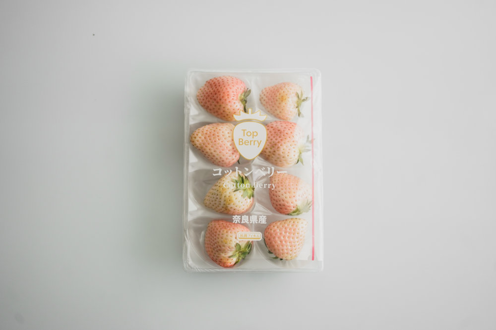 いわゆる白苺。白苺を「味が薄い」「あまり美味しくない」というイメージを持つ方もいらっしゃるかもしれません。この「コットンベリー」は、その常識を覆す美味しさで、海外のキャンディのような甘いポップな香りが特徴的です。この品種を開発したのは異色の“個人いちご育種家”とも呼ばれる大村佳伊人さん。「美味しい苺を、白苺を食べて欲しい」そんな思いが詰まっています。